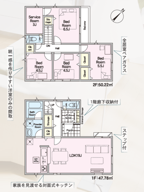 システムキッチン/対面キッチン/浴室暖房乾燥機/シャワー付洗面化粧台/トイレ2カ所/温水洗浄便座/24時間換気システム/玄関収納