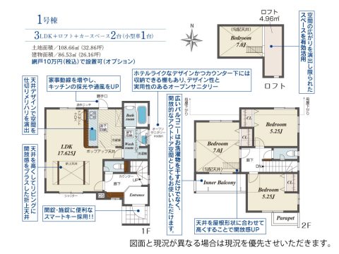 - システムキッチン/対面キッチン/浴室暖房乾燥機/浴室に窓/シャワー付洗面化粧台/トイレ2カ所/温水洗浄便座/ロフト/24時間換気システム/玄関収納